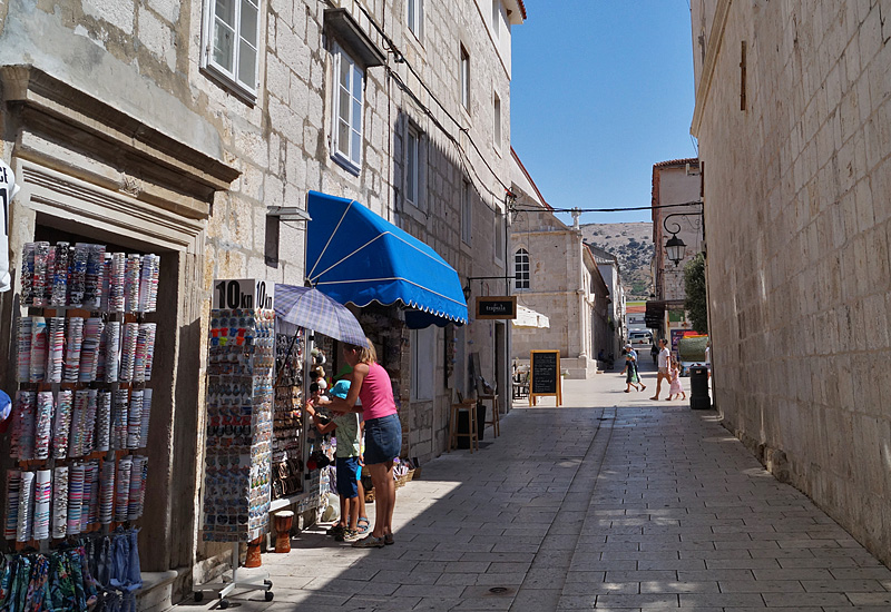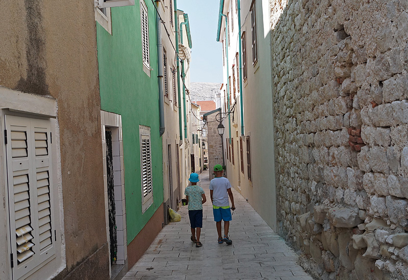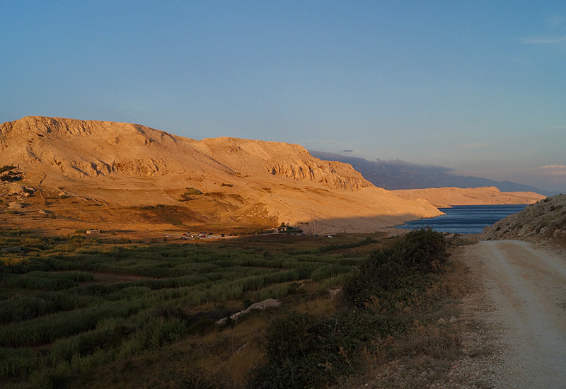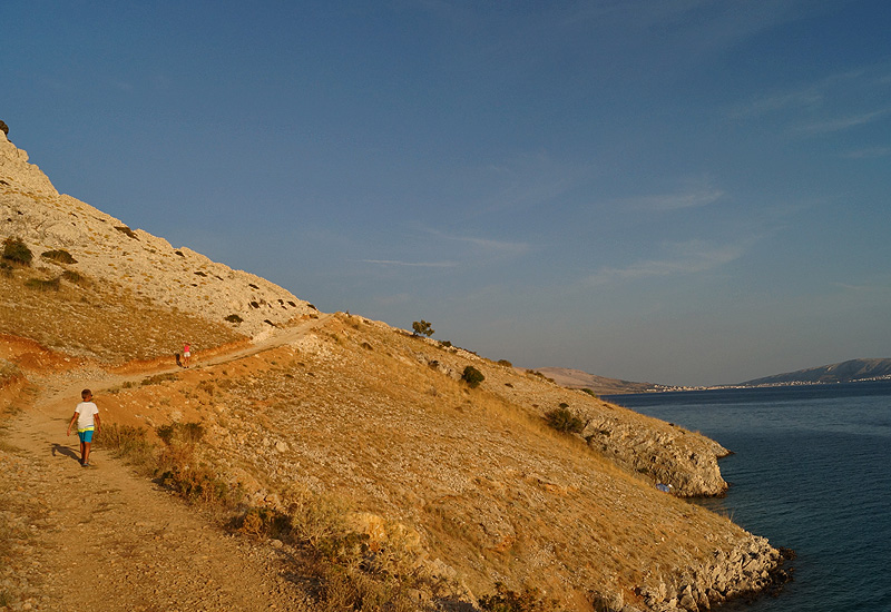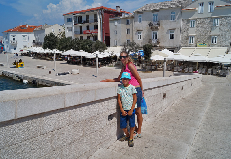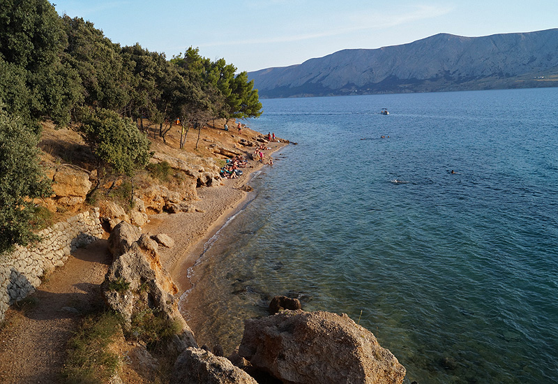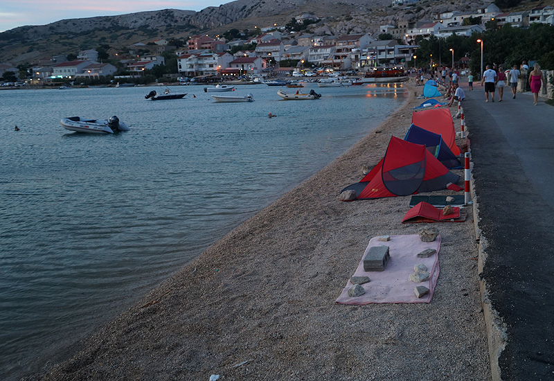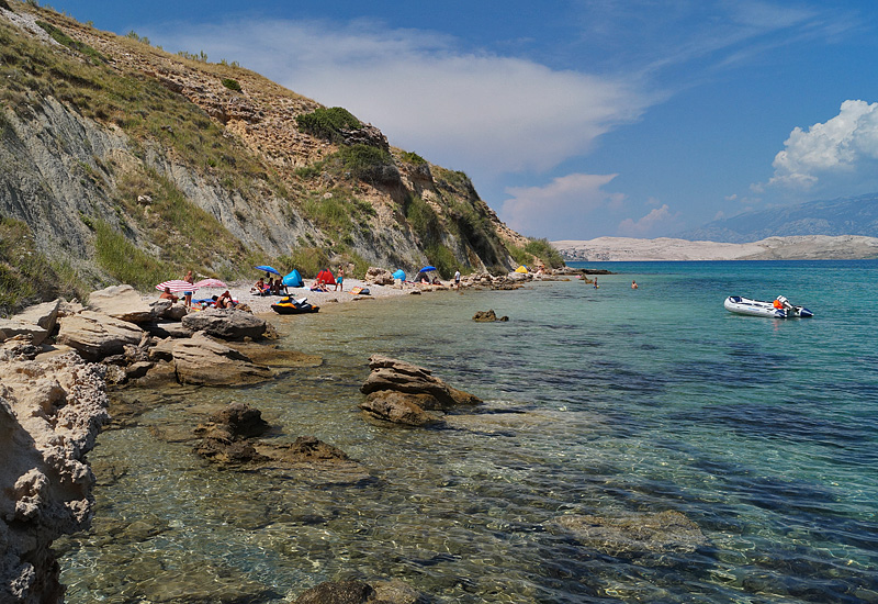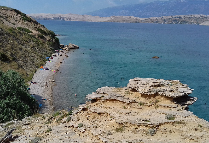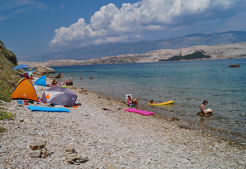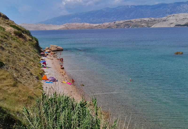 To jest chyba najgorsze miejsce na całym Pagu, plaża szerokości 2 metry, ludzie i auta nad głowami, łódki przycumowane i zapach ryb jak w porcie