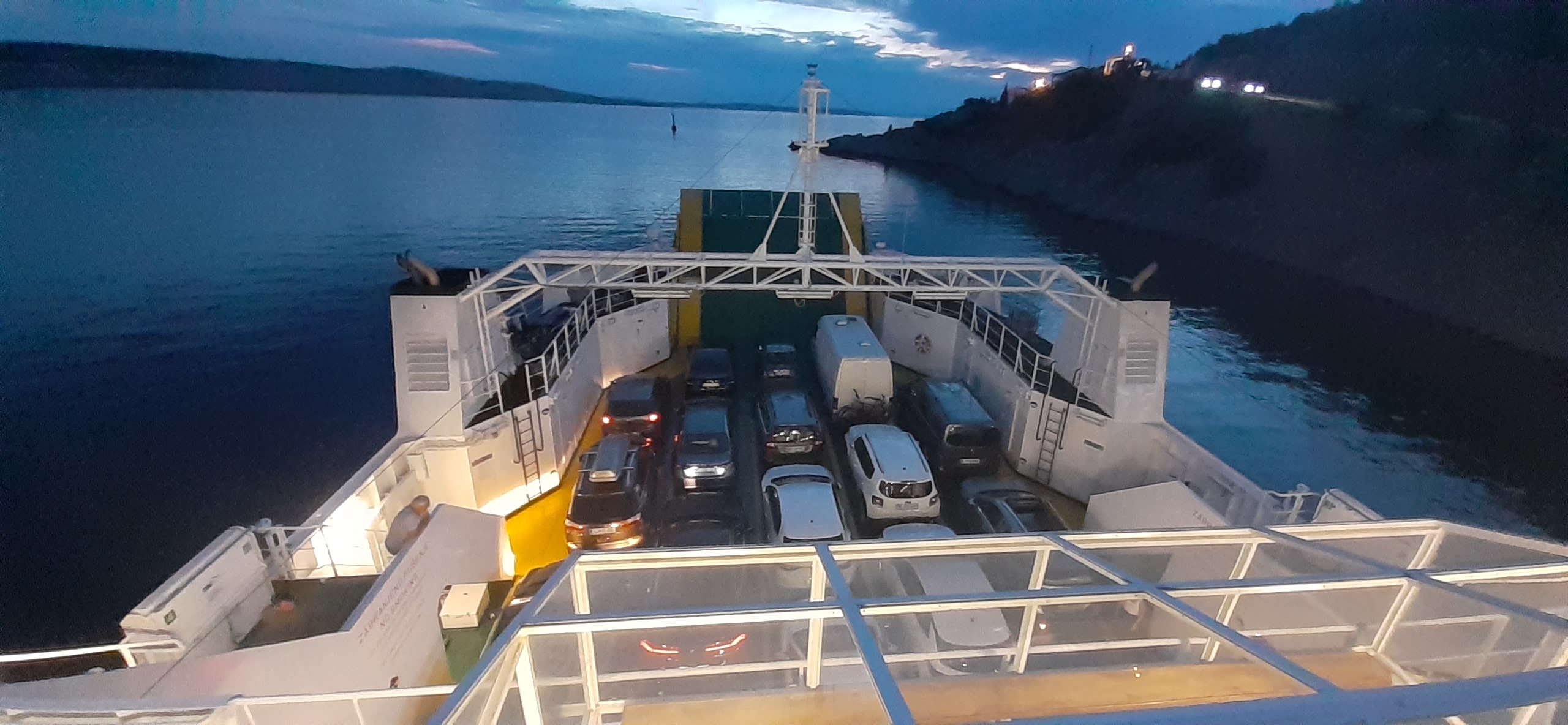 Na prom Prizna dojechaliśmy po zachodzie słońca, na całe szczęście jeszcze było co nie co widać. To mój pierwszy taki transport wodny w życiu i wyszedł na plus jeśli chodzi o czas podróży.