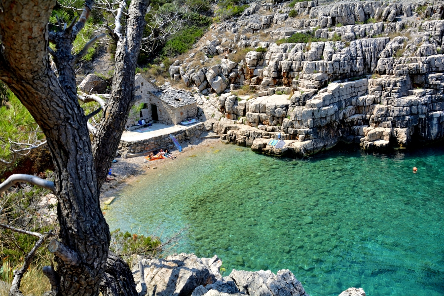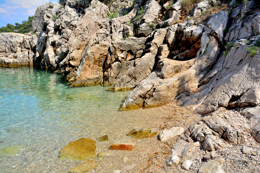 Jak już pisałem, przy wyjściu ostatnim razem a Malej Stinivy, Synek spytał czy jeszcze tu wrócimy. Kolejną plażą miała być Zaraće, ale jak powiedziałem, że znów trzeba jechać, a z drugiej strony przecież nie wiem czy będą tam skałki do skakania (a są ?