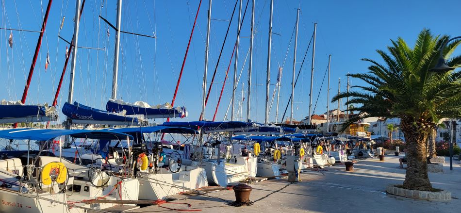 Chcemy jeszcze zajrzeć do mariny Frapa – tam jest pływająca stacja benzynowa, moglibyśmy zatankować zbiornik do pełna bez kolejki.