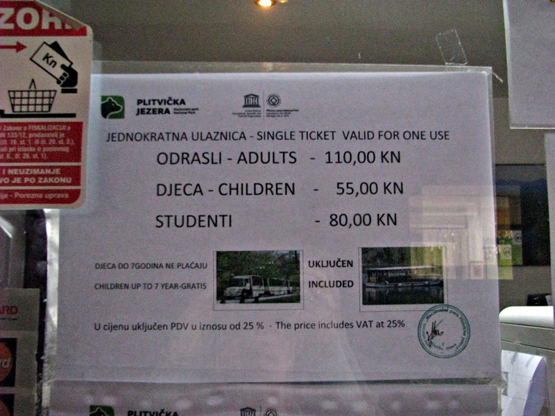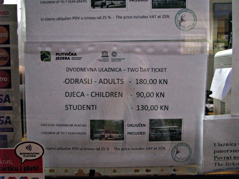 i idziemy do wejścia a tam już Azjaci obkupują pierwszą kasę. Z drugiej wychyla się kasjerka i zaprasza do niej. Kupujemy dwa bilety, cena dla dorosłych w czerwcu to 110 kun/osobę.