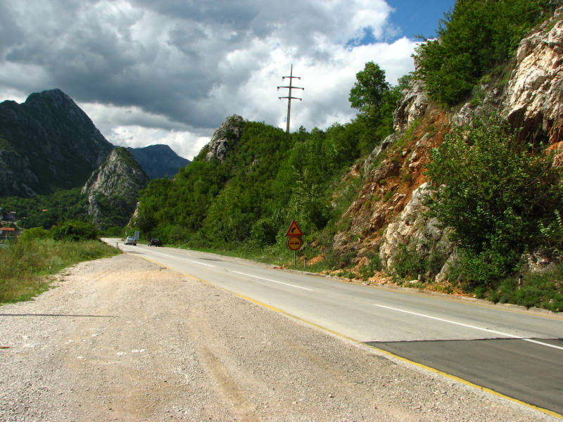 Na jakimś rozwidleniu mamy wątpliwości. Jechać prosto, czy skręcić? Dobrze by było to wiedzieć. Jedziemy prosto, ale po chwili zatrzymujemy się. Patrzę na mapę, Jurek ogląda się do tyłu próbując odczytać coś z drogowskazu, który minęliśmy. Nasze niezdecydowanie najwyraźniej zauważają bośniaccy policajce, bo podjeżdżają i bez żadnego pytania z naszej strony pokazują nam drogę na Prozor. Widać nie my jedni mieliśmy w tym miejscu wątpliwości. Posyłamy im promienne uśmiechy, dziękujemy i jedziemy dalej. Okazuje się, że jechaliśmy dobrze, ale dużo lepiej mieć pewność. Tirów na razie nie widać. Droga jest taka, do jakich się już przyzwyczailiśmy. Wije się między górami, które co jakiś kawałek zmieniają swój charakter.