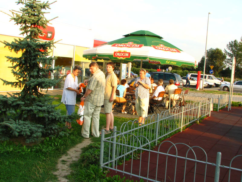 Dojeżdżamy pierwsi. Czekamy na parkingu, który trudno nazwać parkingiem, raczej przed bramkami na autostradę. Niebawem nadjeżdżają Krakusy. Już z samochodu śmieją się do nas. My śmiejemy się do nich. "Musiałem cię zobaczyć!" - woła zza kierownicy Janusz. Musimy się stąd zmywać, bo właśnie policja czepia się ludzi, którzy dalej zaparkowali. Widać nie wolno tu urządzać postoju. Wjeżdżamy na autostradę i zatrzymujemy się na parkingu obok stacji benzynowej.