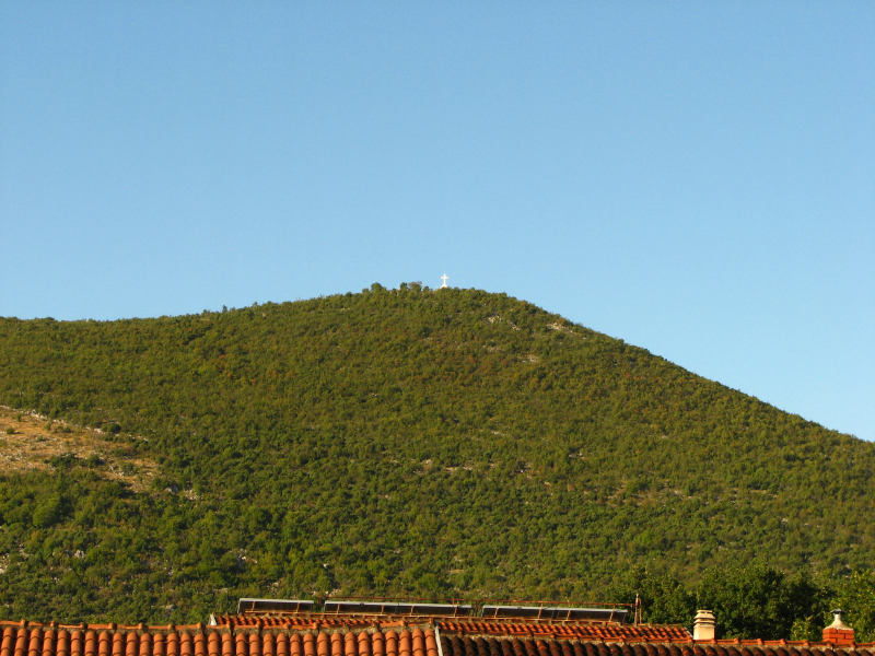 Przechodzimy alejkami i wychodzimy na polną drogę wiodącą do góry Križevac. Tu się czujemy jak na każdej polnej drodze, czyli dobrze. Gwar został za nami, mijają nas tylko czasem ludzie, którzy pojedynczo, a czasem po dwóch, wracają z Góry. Widać w nich głębokie skupienie. Jeśli już rozmawiają, to szeptem.