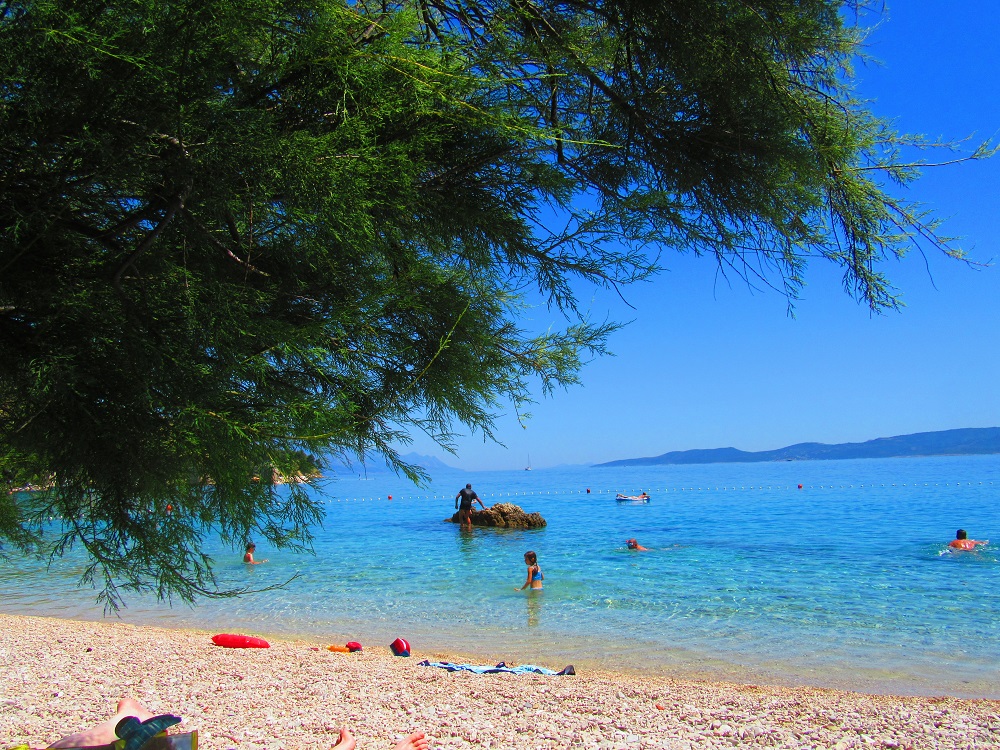 Jeśli mała miejscowość i prysznic przy plaży to polecam naszą miejscówkę w Lokvie Rogoznica. Prysznic jest przy naszej plaży- najbliższej apartamentu, przy innych też chyba są. Plaża bardzo przyjazna z bojkami i miejscem do skoków dla początkujących (skałka poniżej).