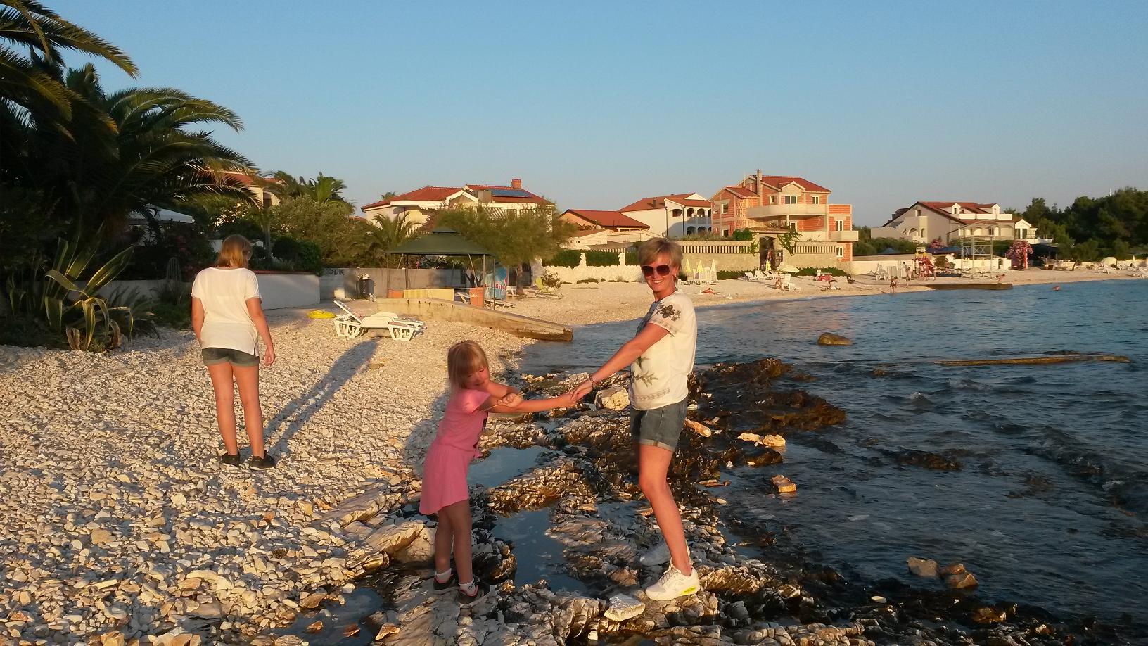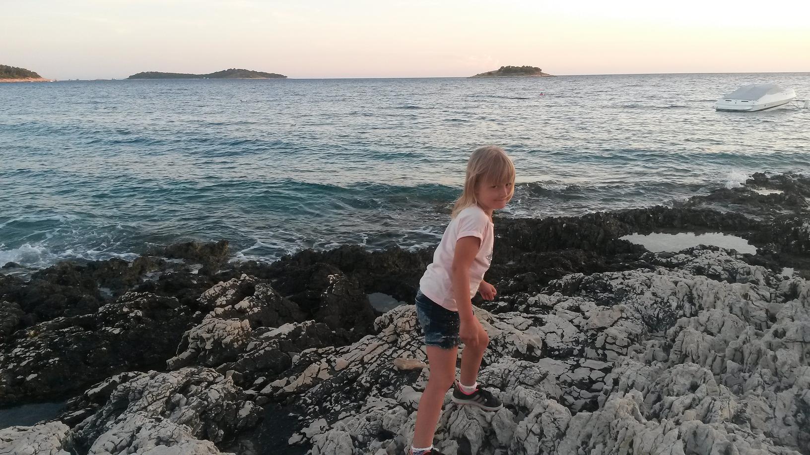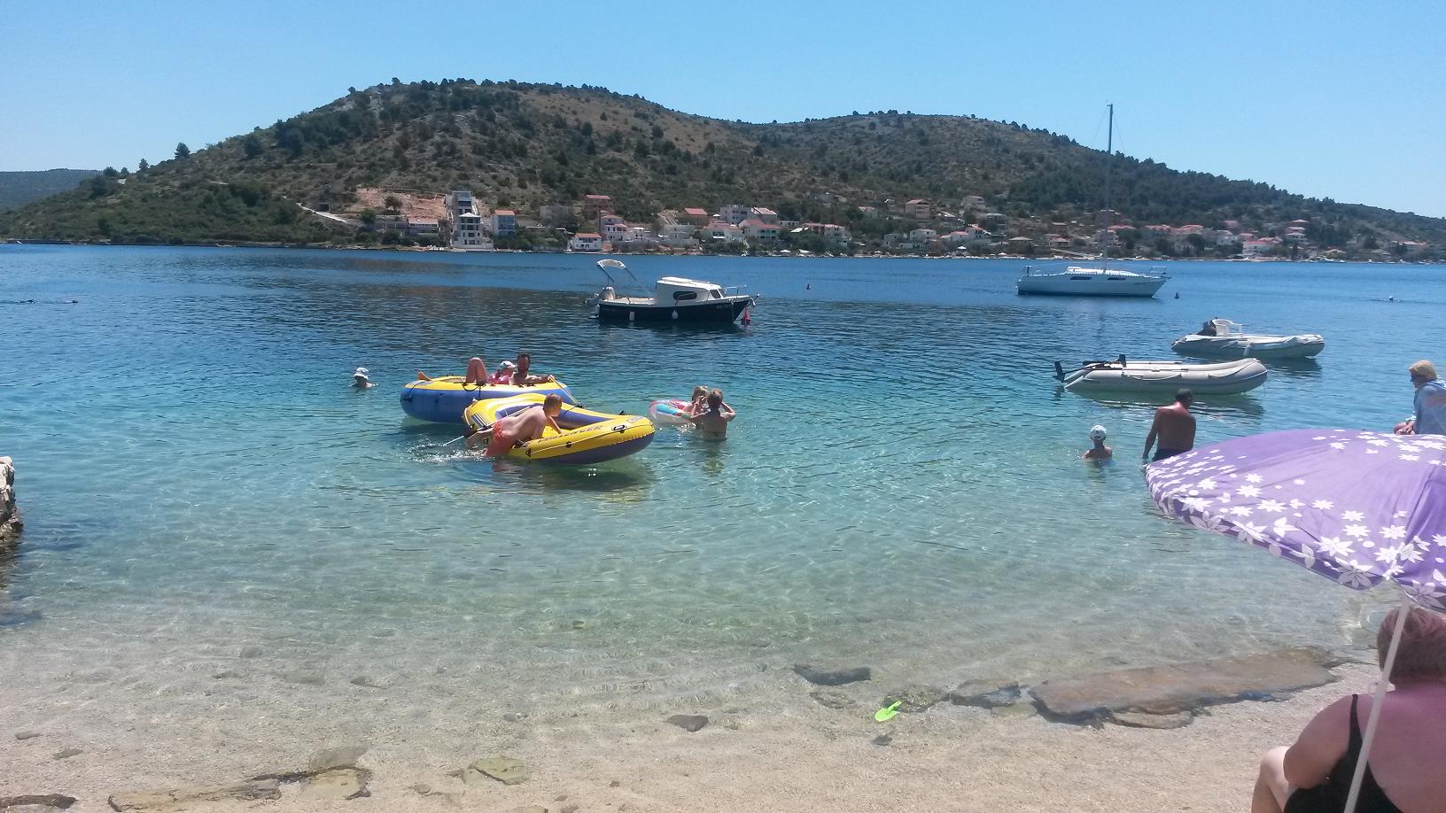 Zacznę od rzeczy, która była dla nas priorytetem – plaża ma być blisko. W Rogoźnicy jest duży wybór plaż. Są plaże dla tych co lubią widok na otwarte morze ( Sepurine, Zacevarska, Lozica), jest plaża miejska Milna, są plaże na wyspie (Kopara i Racica) no i jeszcze w południowej zatoczce Crljina, Stupin-Celine i naprzeciwko Crljiny plaża Zatoglav. Używając terminologii narciarskiej, każda o innym stopniu trudności. Bez wątpienia najbardziej wymagająca Lozica, dla maluszków polecam Celinę i właśnie Crljinę, dla nieco starszych Sepurine i Zacevarską (otwarte morze i duże fale się zdarzają). Milnę nie polecam (wąsko i centrum) a na wyspie sam nie wiem, chyba bardziej Racice ( po drugiej stronie starej rogoźnicy), przy Koparze kursują kutry. Nasza plaża Crljina taka z boku, cicha, wycofana, spokojna, ciepła przyjazna, ze żwirkiem i płytami. Zresztą sami zobaczcie.