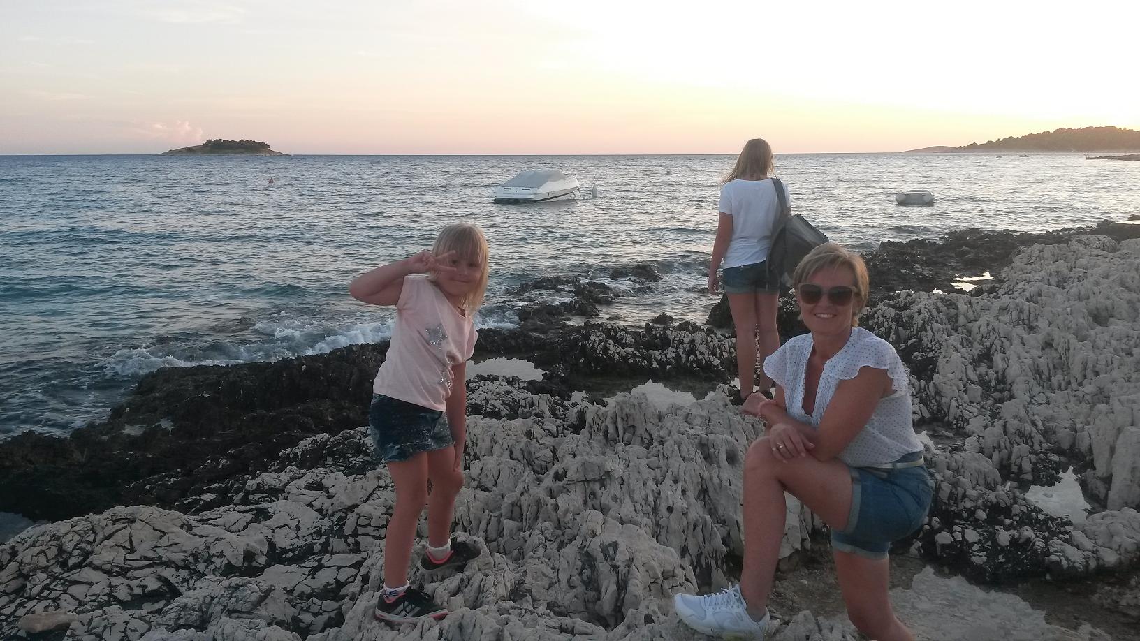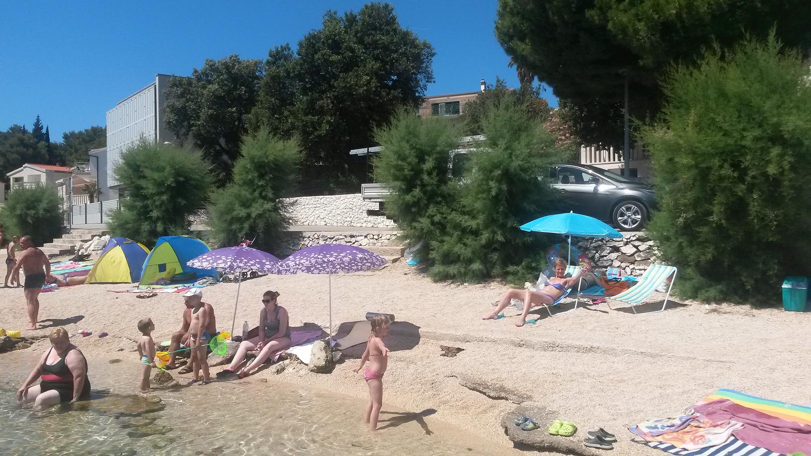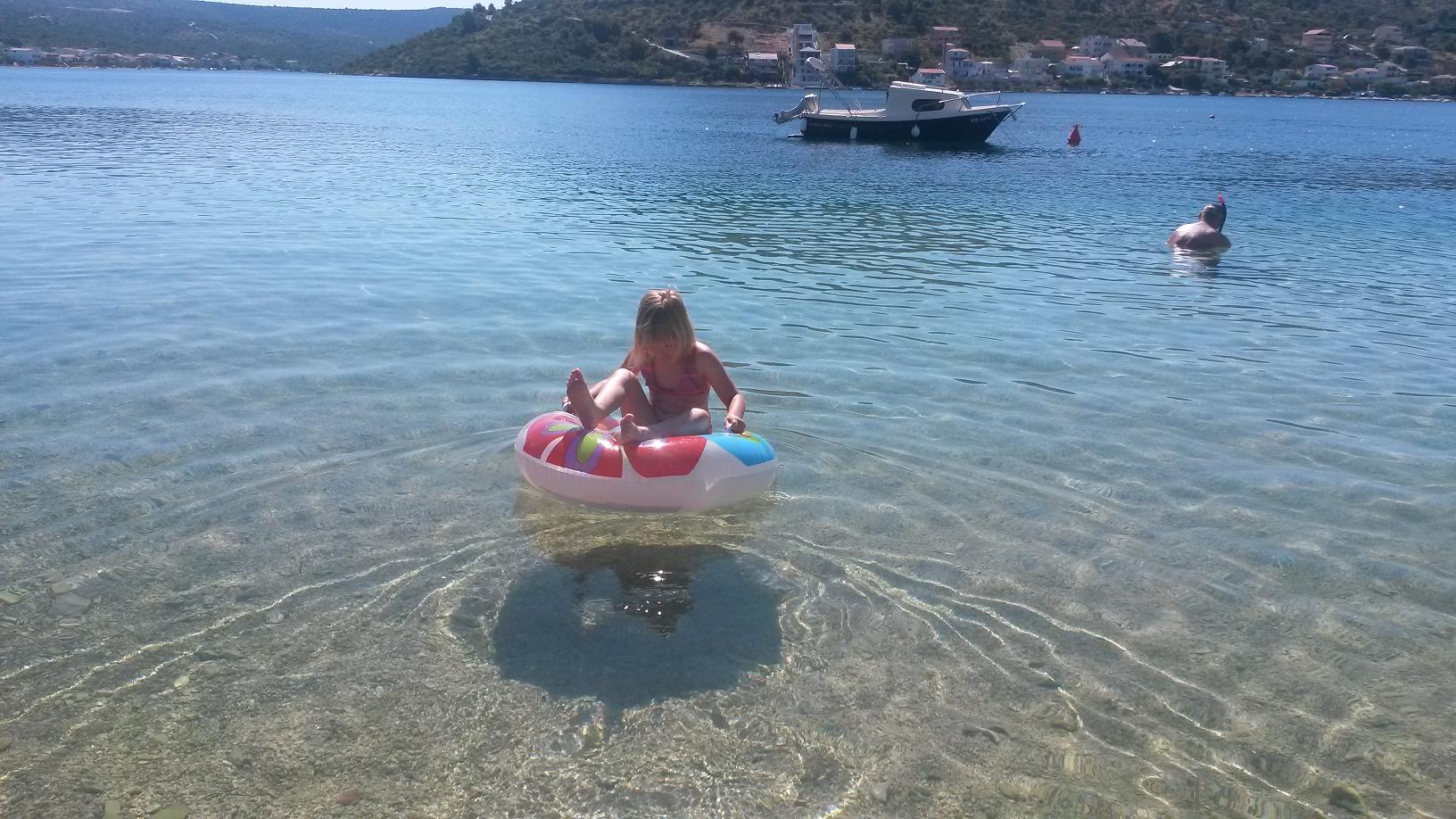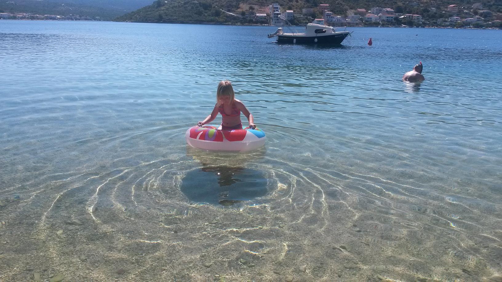 Zacznę od rzeczy, która była dla nas priorytetem – plaża ma być blisko. W Rogoźnicy jest duży wybór plaż. Są plaże dla tych co lubią widok na otwarte morze ( Sepurine, Zacevarska, Lozica), jest plaża miejska Milna, są plaże na wyspie (Kopara i Racica) no i jeszcze w południowej zatoczce Crljina, Stupin-Celine i naprzeciwko Crljiny plaża Zatoglav. Używając terminologii narciarskiej, każda o innym stopniu trudności. Bez wątpienia najbardziej wymagająca Lozica, dla maluszków polecam Celinę i właśnie Crljinę, dla nieco starszych Sepurine i Zacevarską (otwarte morze i duże fale się zdarzają). Milnę nie polecam (wąsko i centrum) a na wyspie sam nie wiem, chyba bardziej Racice ( po drugiej stronie starej rogoźnicy), przy Koparze kursują kutry. Nasza plaża Crljina taka z boku, cicha, wycofana, spokojna, ciepła przyjazna, ze żwirkiem i płytami. Zresztą sami zobaczcie.