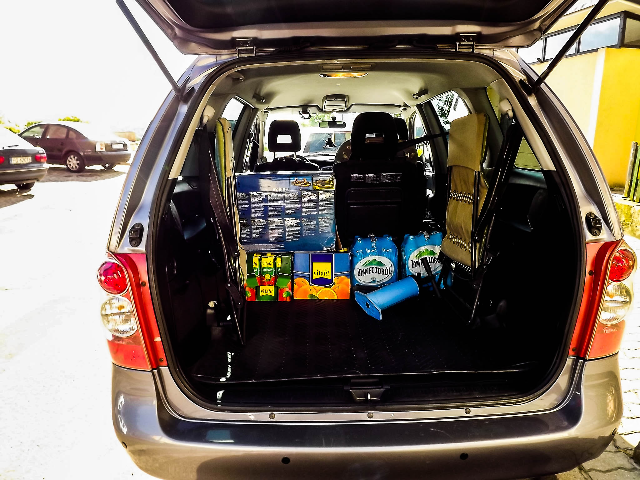 Dzień wyjazdu i moje obawy związane z ilością miejsca w samochodzie – mimo, że Van pomieści sporo to znając możliwości i pomysły mojej żony mógł okazać się za mały. Zapobiegliwie zostawiłem w samochodzie tylko 3 niezbędne fotele do siedzenia i po załadowaniu 1/3 bagażu już widać było, że nie ma się czego obawiać… jeszcze będzie luz.