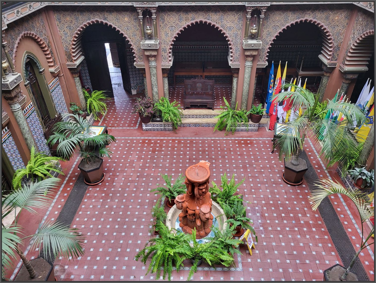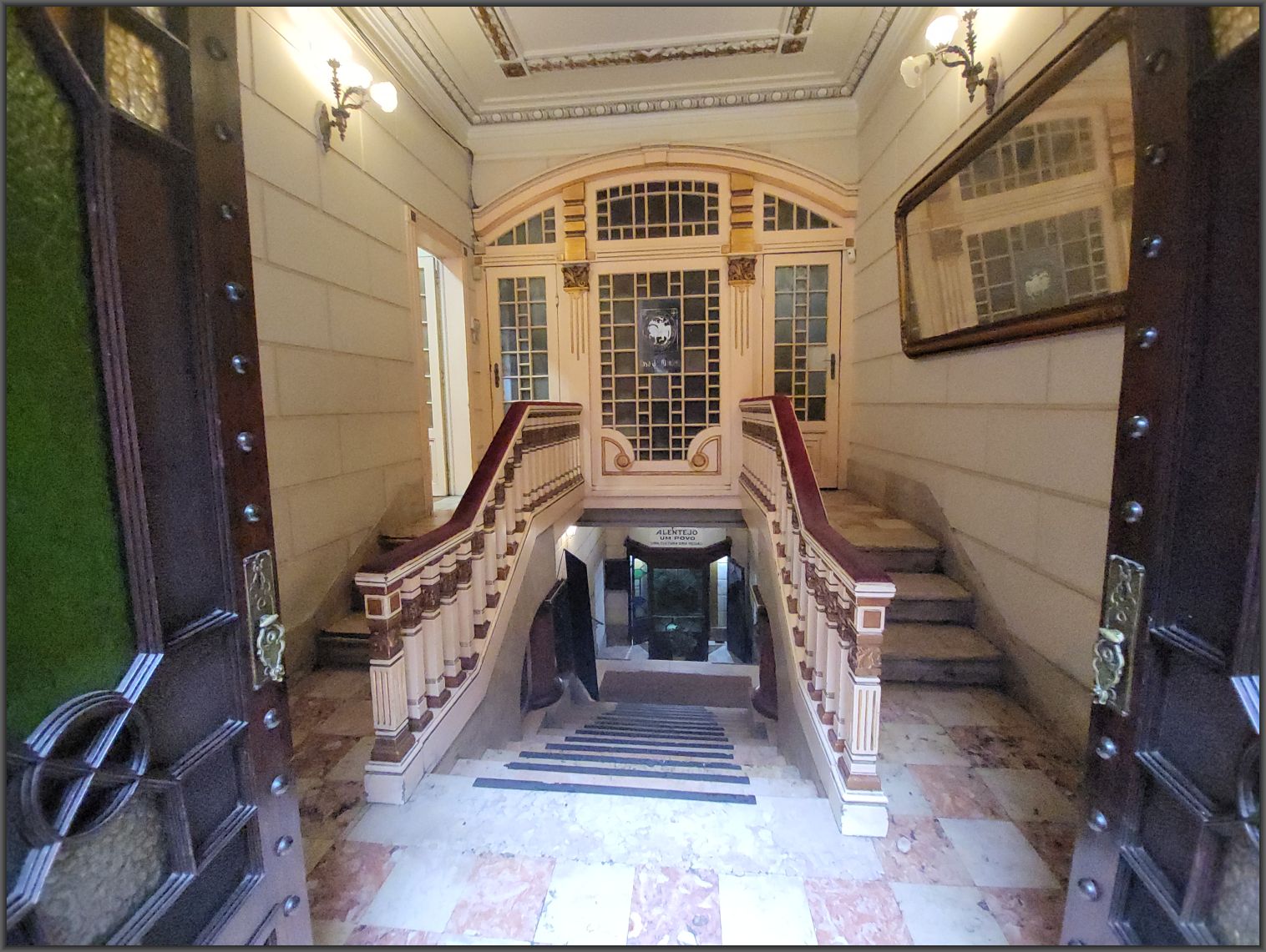 Gdy obejrzeliśmy dół budynku udaliśmy się schodami na piętro, podziwiając po drodze pięknie zdobioną klatkę schodową.