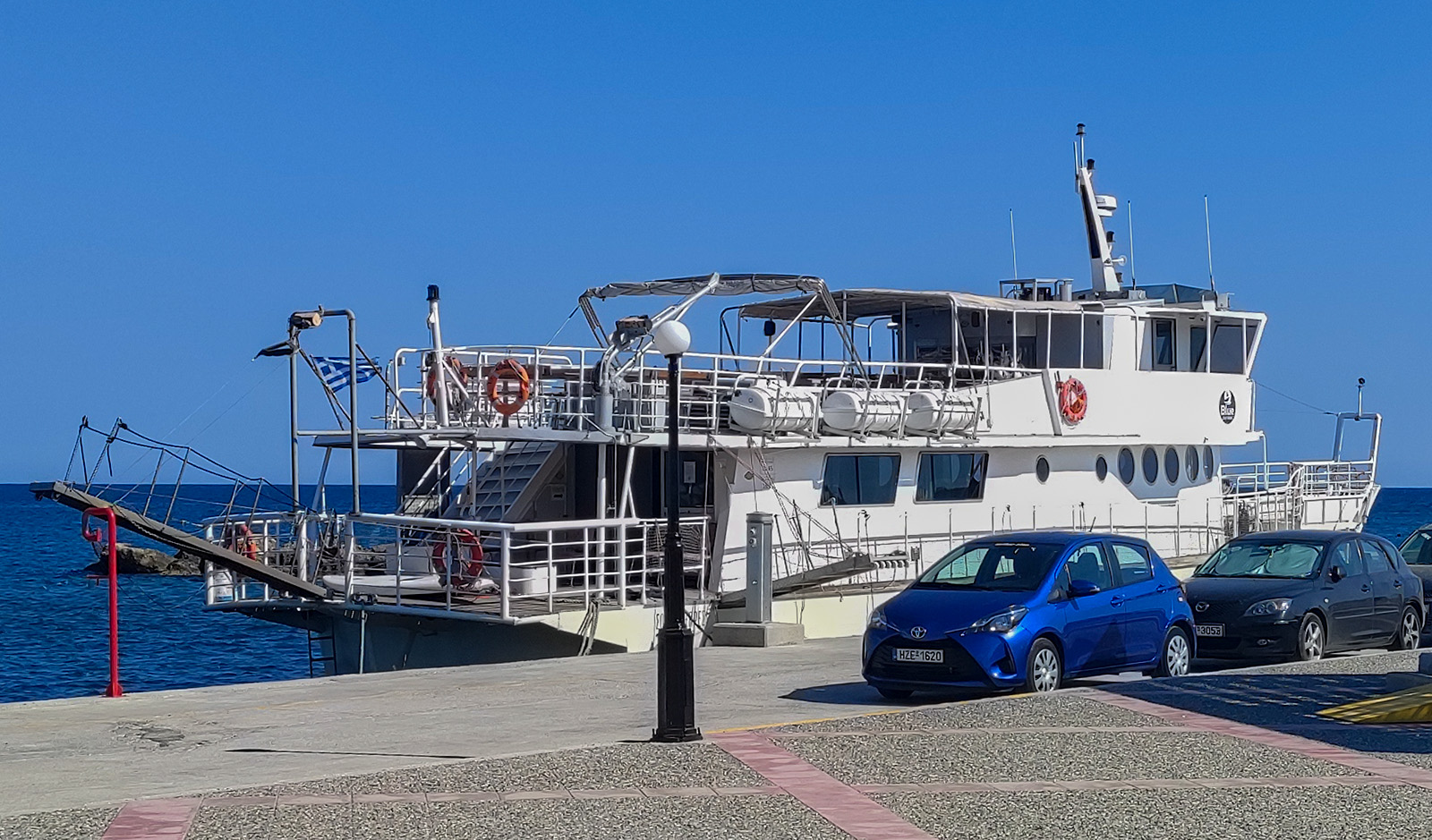 Machałem na autokary, więc nie wiem, czy osobówki się zatrzymują. Rezydent po wpadce z nieudaną wycieczką i cenami wynajęcia samochodów nas nie zachwycił. Ceny zaczynały się od 60E w górę za dzień. Pełne ubezpieczenie, dowóz samochodu do hotelu, - bla, bla – super oferta. Stąd też, wycieczki do Jerapetry i okolice hotelu, aby się zapoznać z cenami. Poniżej kilka fotek jako ilustracja. Samochód ostatecznie wypożyczyliśmy na trzy dni w pobliżu hotelu, który jest na zdjęciu. 130E/3dni – z pełnym ubezpieczeniem, samochód automagicznie stał pod pod naszym hotelem, właściciel/pracownik przyjechał do nas do hotelu podpisać umowę. Na odchodnym powiedział, żeby się nie przejmować zarysowaniami, bo jest ubezpieczenie i kluczyki zostawić w recepcji hotelu, odstawiając auto pod hotelem.