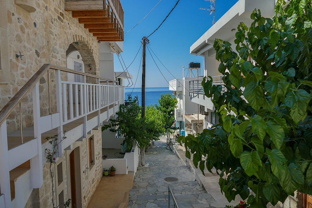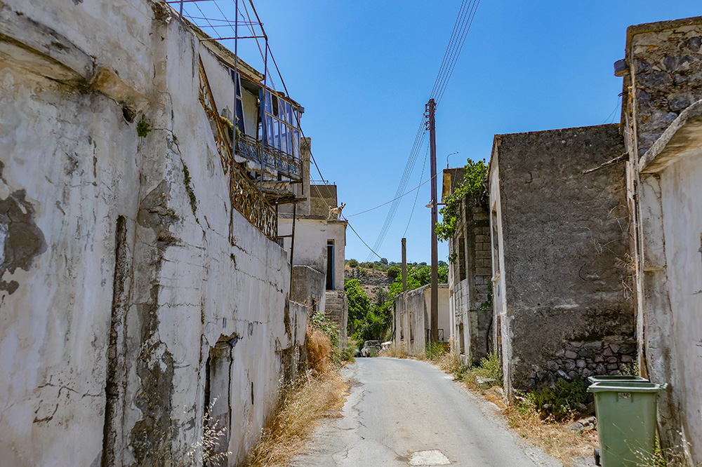 Zostaję sam, żona wraca do samochodu, bo twierdzi, że jest tu strasznie. Nie jest miło i przytulnie jak w typowych wioskach greckich.