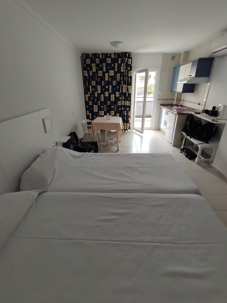 https://www.booking.com/hotel/es/aparta ... ul.pl.htmlBardzo przyzwoity apartamentowiec z basenem, jadalnią i dobrze położony. Mieliśmy 2x2 pokoje, każdy z łazienką i aneksem kuchennym, zupełnie normalnie wyposażonym. Do tego w miarę spory balkon z stolikiem i krzesłami, 4 osoby wieczorami spokojnie sobie siedziały i coś tam sączyły
