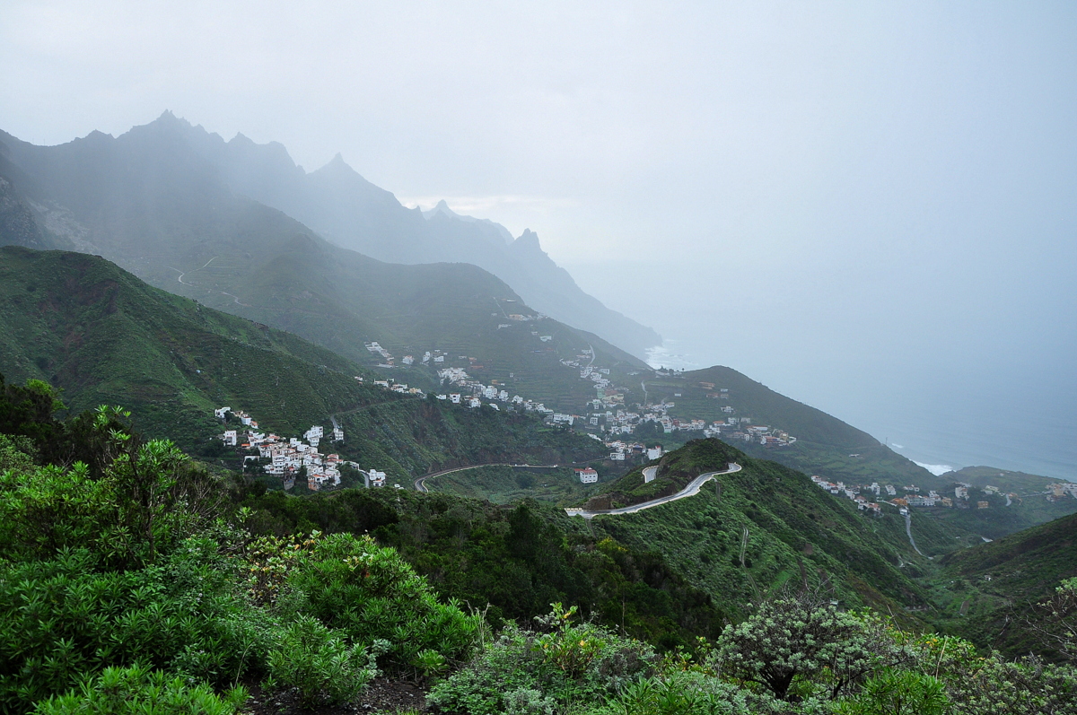 Widać miasteczko Almaciga u stóp którego leży Benijo w zatoczce...ech byłoby pięknie gdyby nie ta pogoda