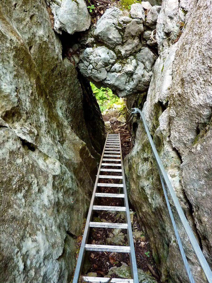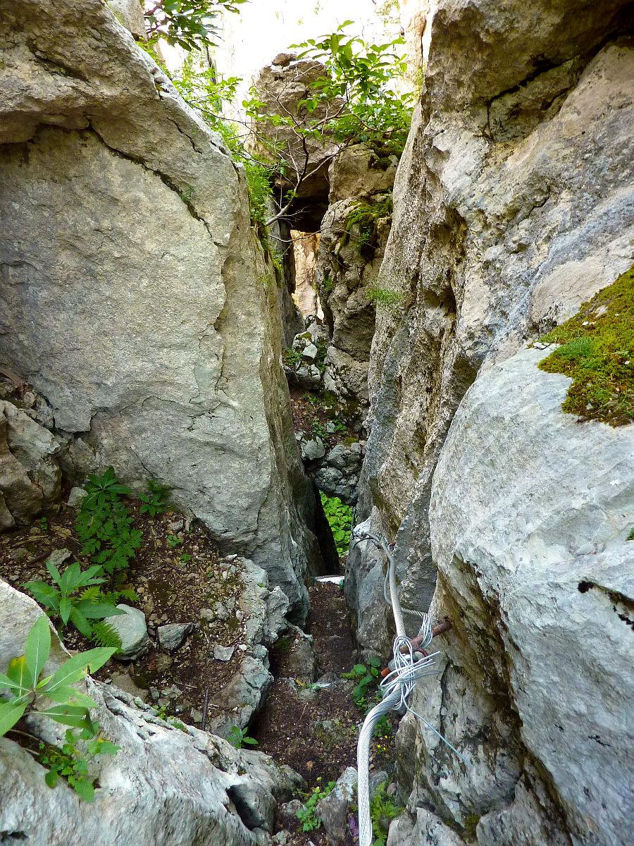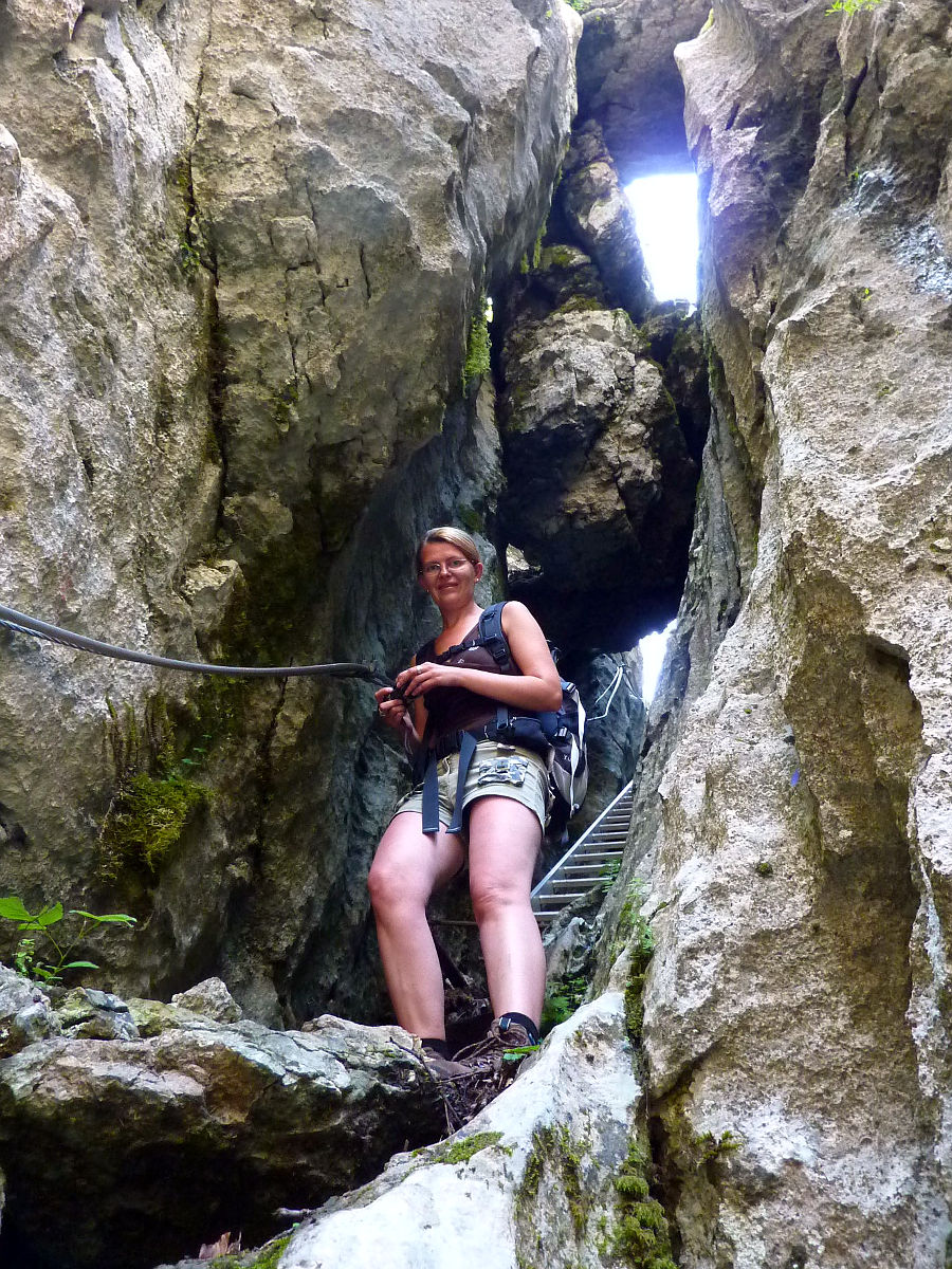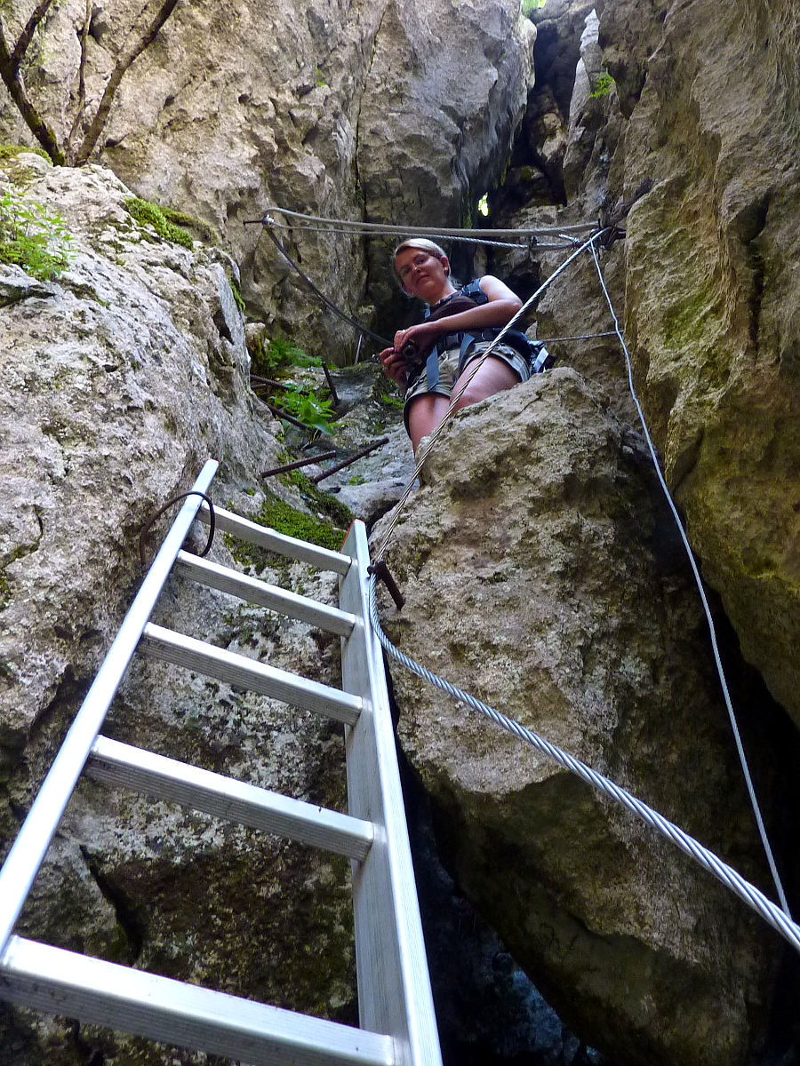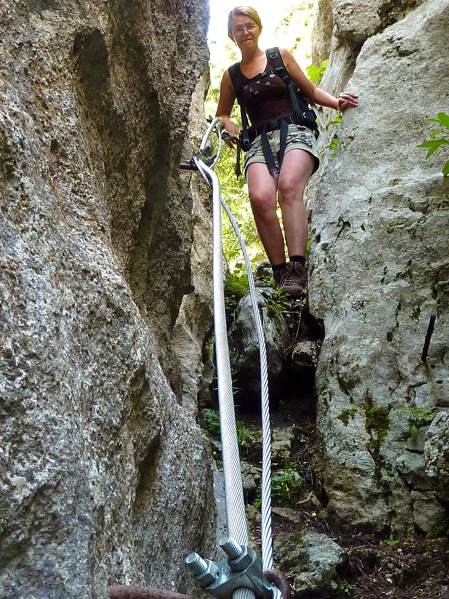Zejście jest ciekawe i nietrywialne - o ile metalowe drabiny nie przedstawiają żadnych trudności, to w paru miejscach przeszkadzają nieco zaniedbane i pokręcone liny asekuracyjne.