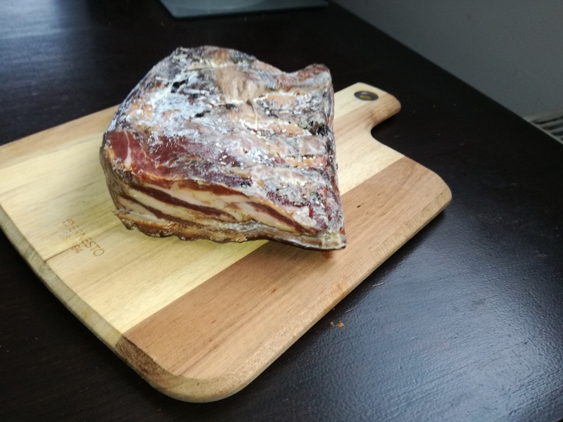 I wędzonka od kasztelana z zamku Bizeljsko - wygląda bardzo niezdrowo, ale pokrojona w cieniutkie plasterki jest doskonałą przekąską do cvička, jak też dodatkiem do ciekawych potraw.