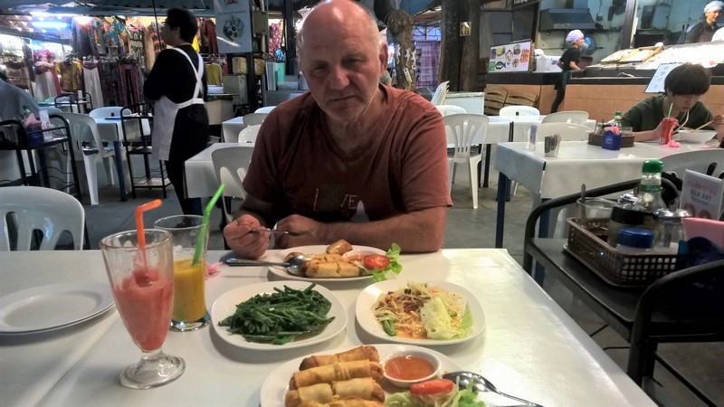 Idziemy poszukać jedzenia, bo koło godziny 21 miasto zasypia. Stragany uliczne nie zrobiły na nas dobrego wrażenia, nie można tego porównywać z tym co widzieliśmy w Chiang Mai.