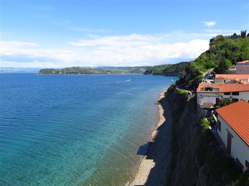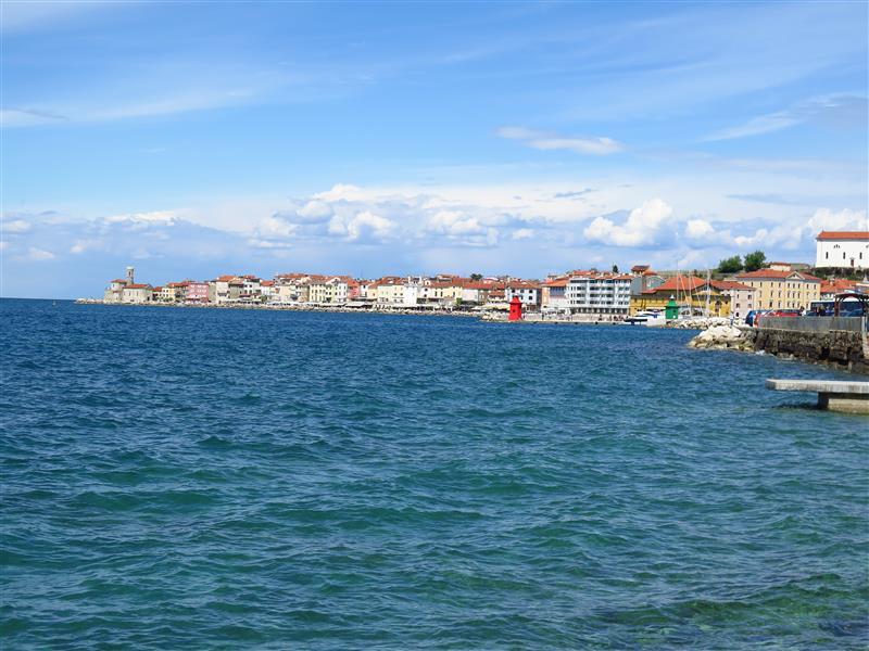 Do centrum Piranu można dojechać bezpłatnym busikiem (cena parkingu jest już wystarczająco wysoka) albo przejść się jakiś kilometr. My oczywiście wybieramy spacer, zwłaszcza, że idzie się cały czas nabrzeżem: