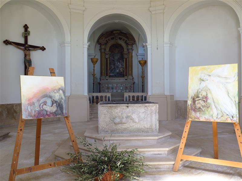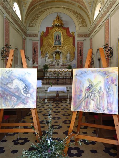 We wnętrzu, jak we wszystkich pirańskich kościołach, do których weszliśmy, na sztalugach wyeksponowano obrazy tematycznie związane z Wielkanocą: