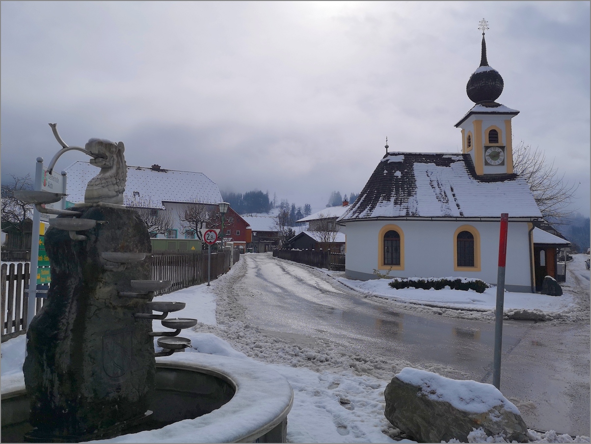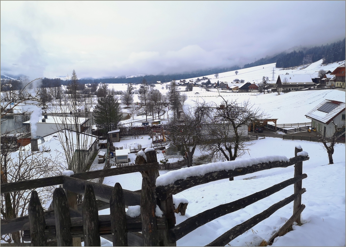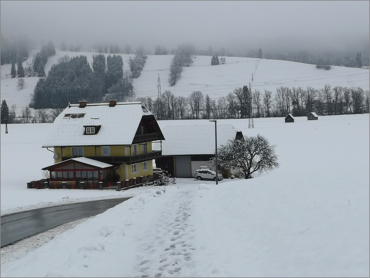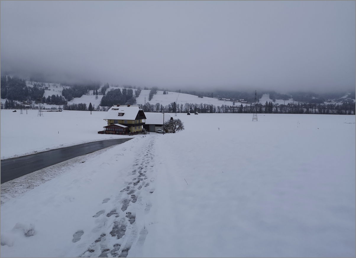 spacer miał zacząć się w Assach, skąd przez Aich i Weißenbach wróciłyśmy do domu... Gdyby na łąkach było dużo śniegu, trasę mogłybyśmy pokonać na biegówkach