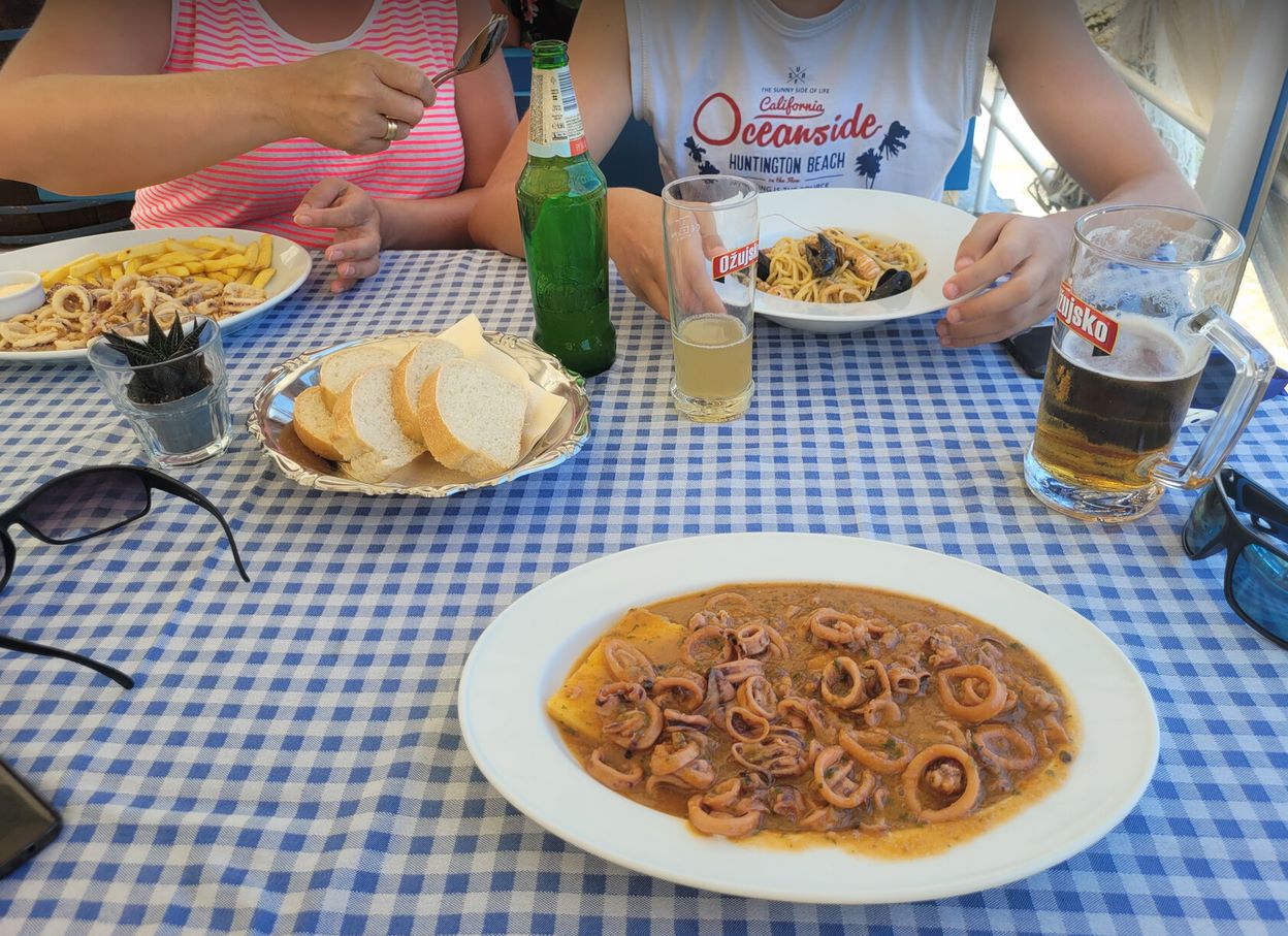 A na obiad świetny brudet z kalmarów z polentą. Zamawiałem z obawą, ale było pyszne.