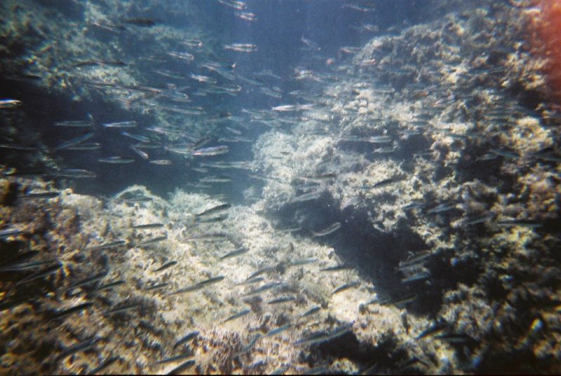 Ale przypłynęliśmy tu głównie po to, żeby ponurkować. Podejrzewamy, że "życie podwodne" jest tu bogatsze niż w zatoce. Nie mylimy się! Zanurzamy głowy pod wodę i jesteśmy oczarowani