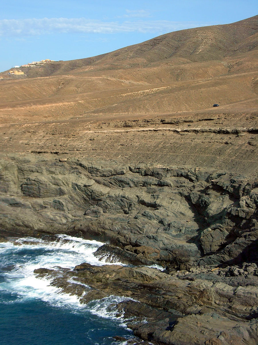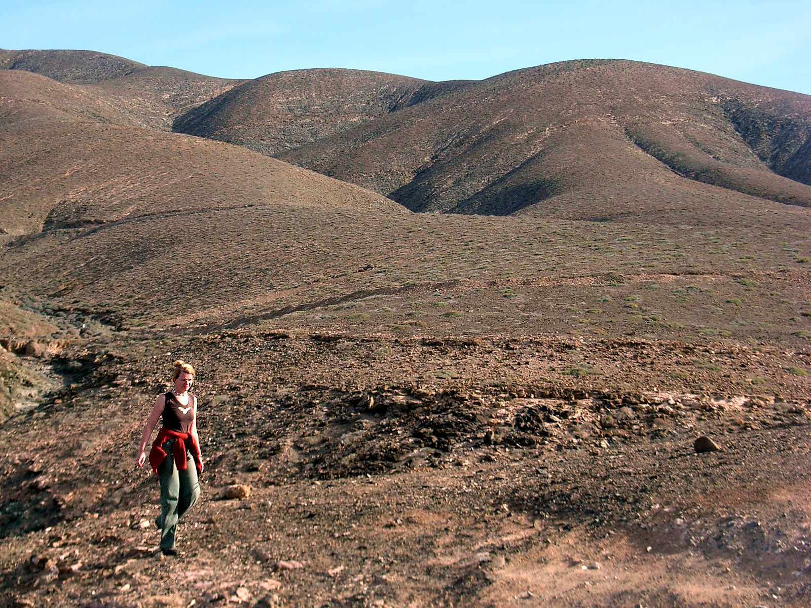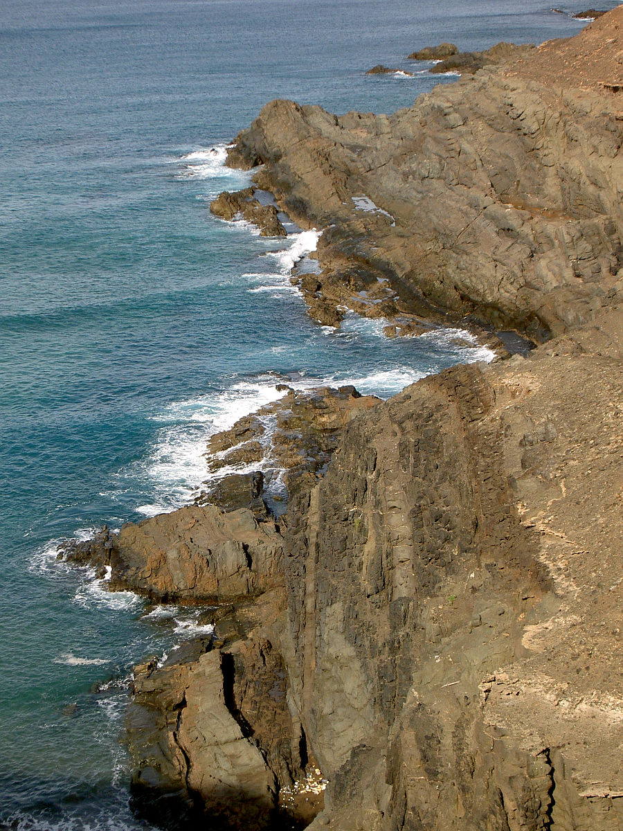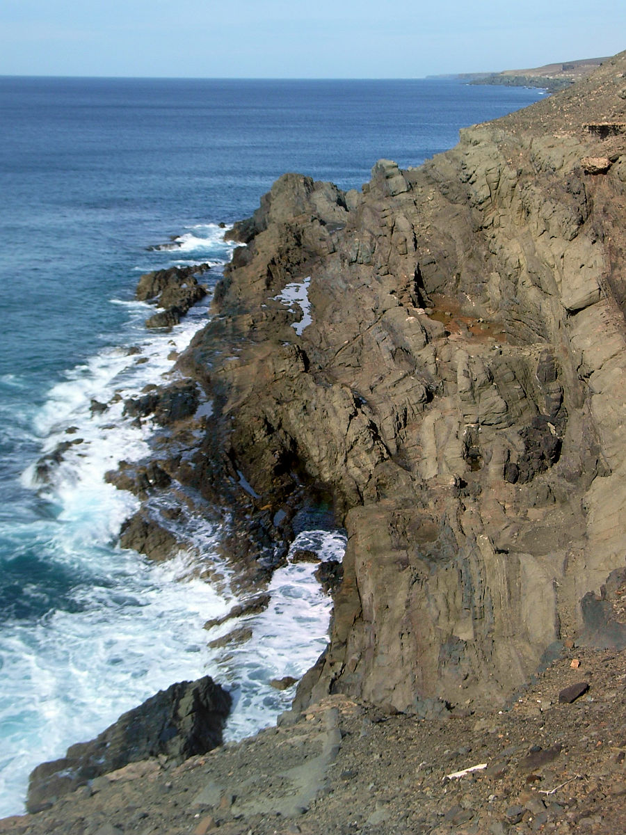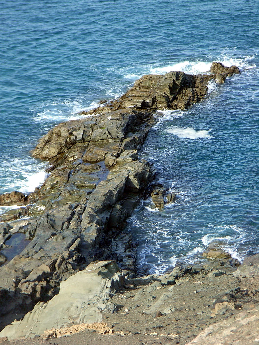 Ścieżka - odchylając się nieco w kierunku zachodnim - wiedzie szerokimi zakosami, lawirując pomiędzy kolejnymi obniżeniami, którymi w jakichś niesłychanie rzadkich sytuacjach zapewne spływa woda z okolicznych wzgórz. Kiedy docieramy do otoczonej skałami, zupełnie bezludnej plaży, zakładamy, że stąd możemy już zawrócić.