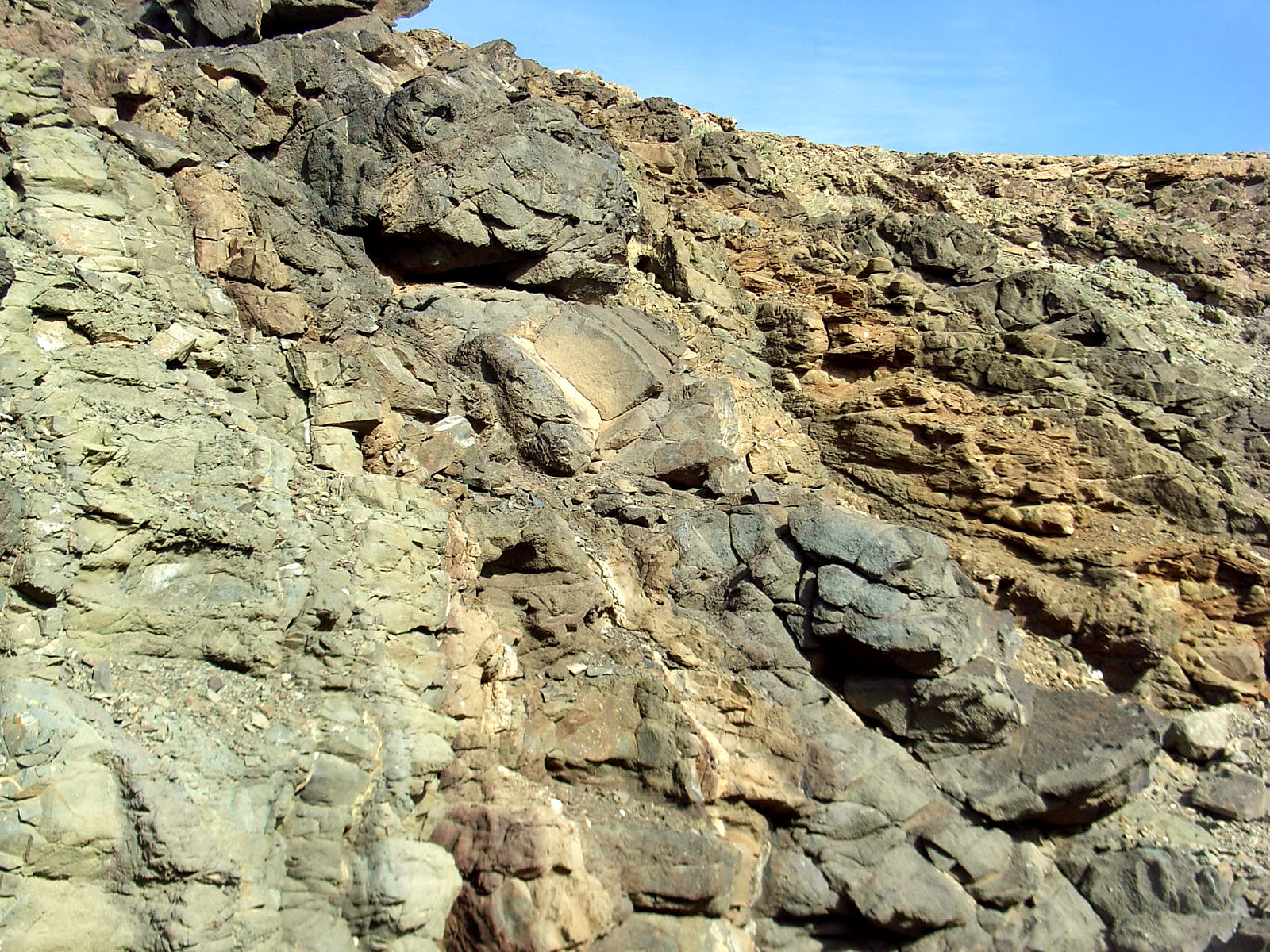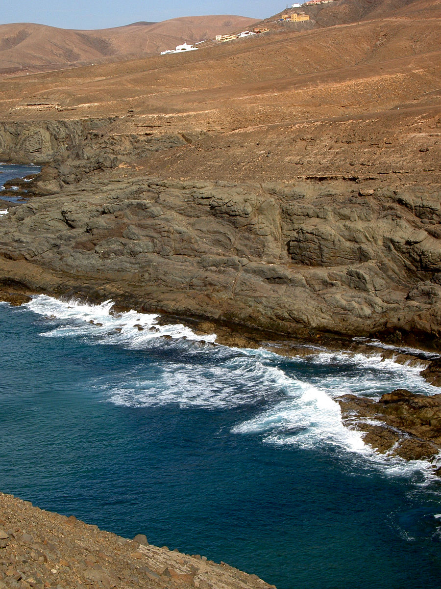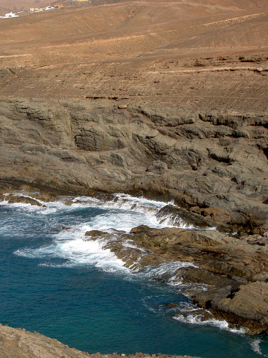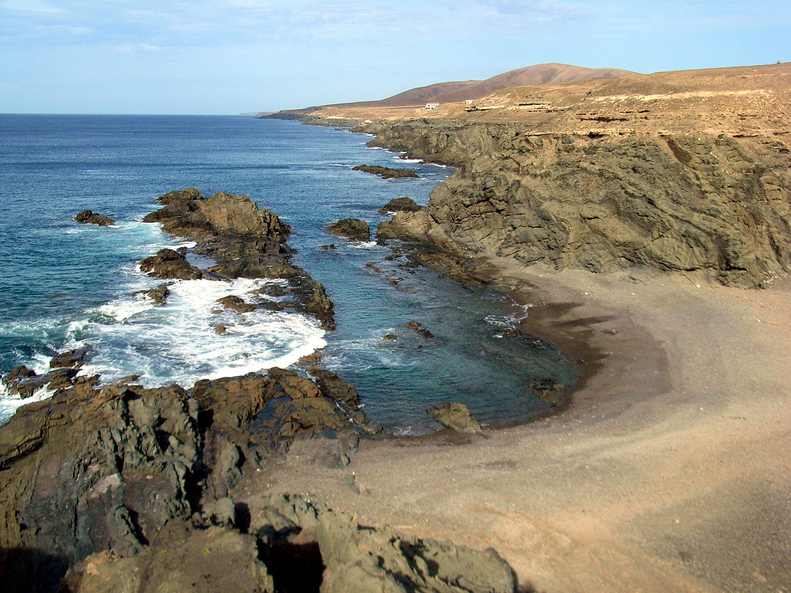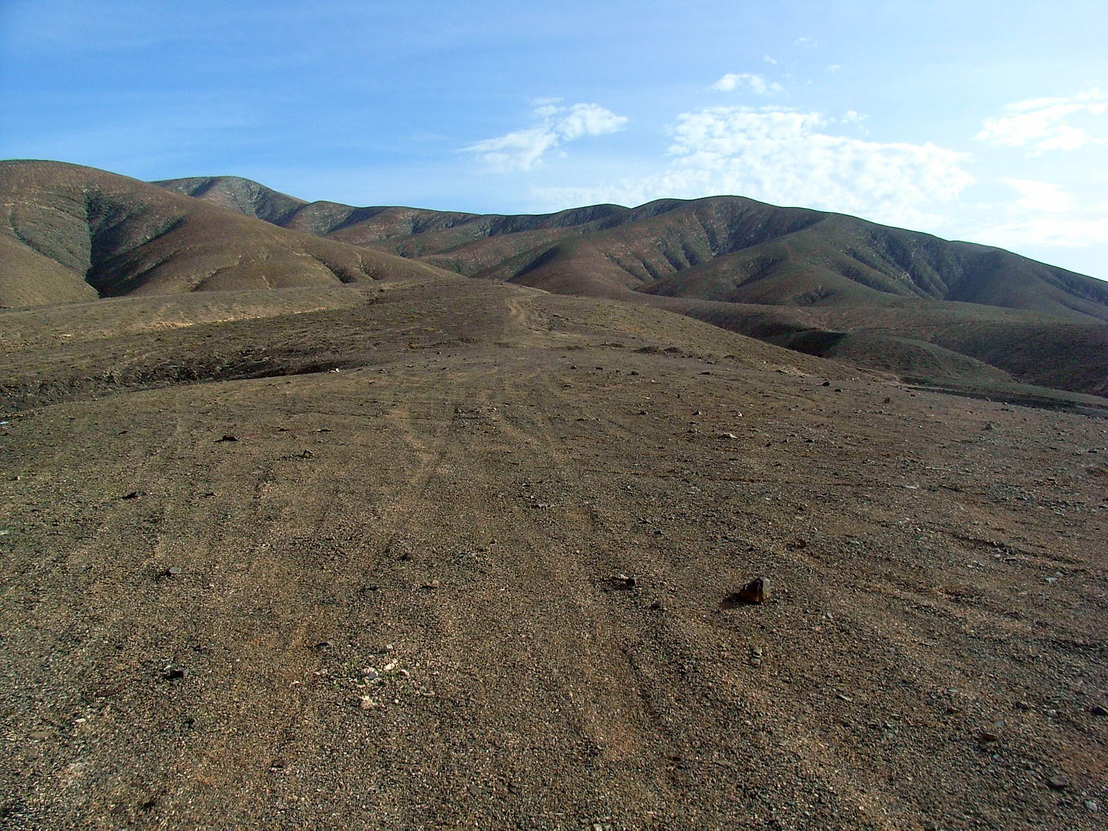 Ścieżka - odchylając się nieco w kierunku zachodnim - wiedzie szerokimi zakosami, lawirując pomiędzy kolejnymi obniżeniami, którymi w jakichś niesłychanie rzadkich sytuacjach zapewne spływa woda z okolicznych wzgórz. Kiedy docieramy do otoczonej skałami, zupełnie bezludnej plaży, zakładamy, że stąd możemy już zawrócić.