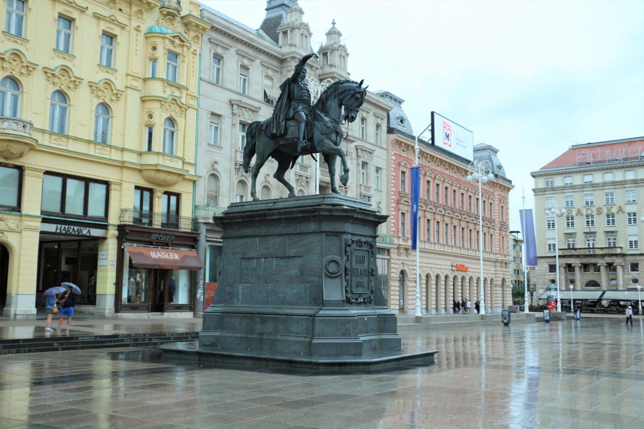 W centrum placu stoi konny pomnik patrona tego miejsca. Jeśli dzięki Józefowi Bemowi możemy mówić że Polak Węgier dwa bratanki, to dzięki Jelačićowi Chorwaci i Węgrzy bratankami nie są