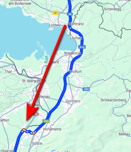 Od wjazdu do Austrii w Hörbranz do skrzyżowania Hohenems autostrada jest bezpłatna.Die Ausnahmen betreffen folgende Strecken: