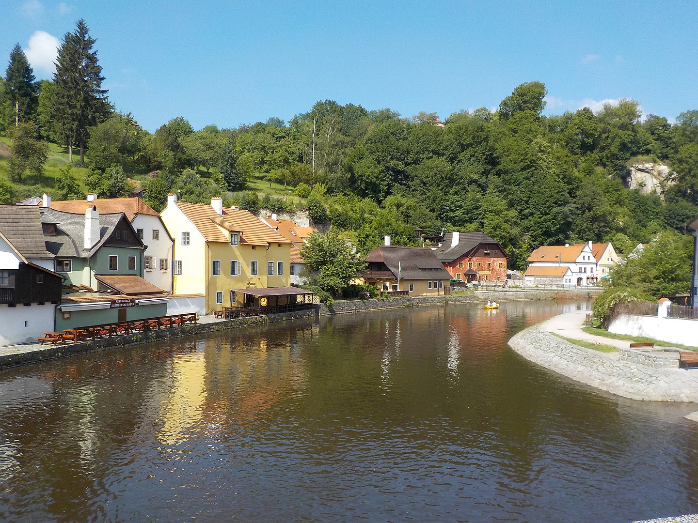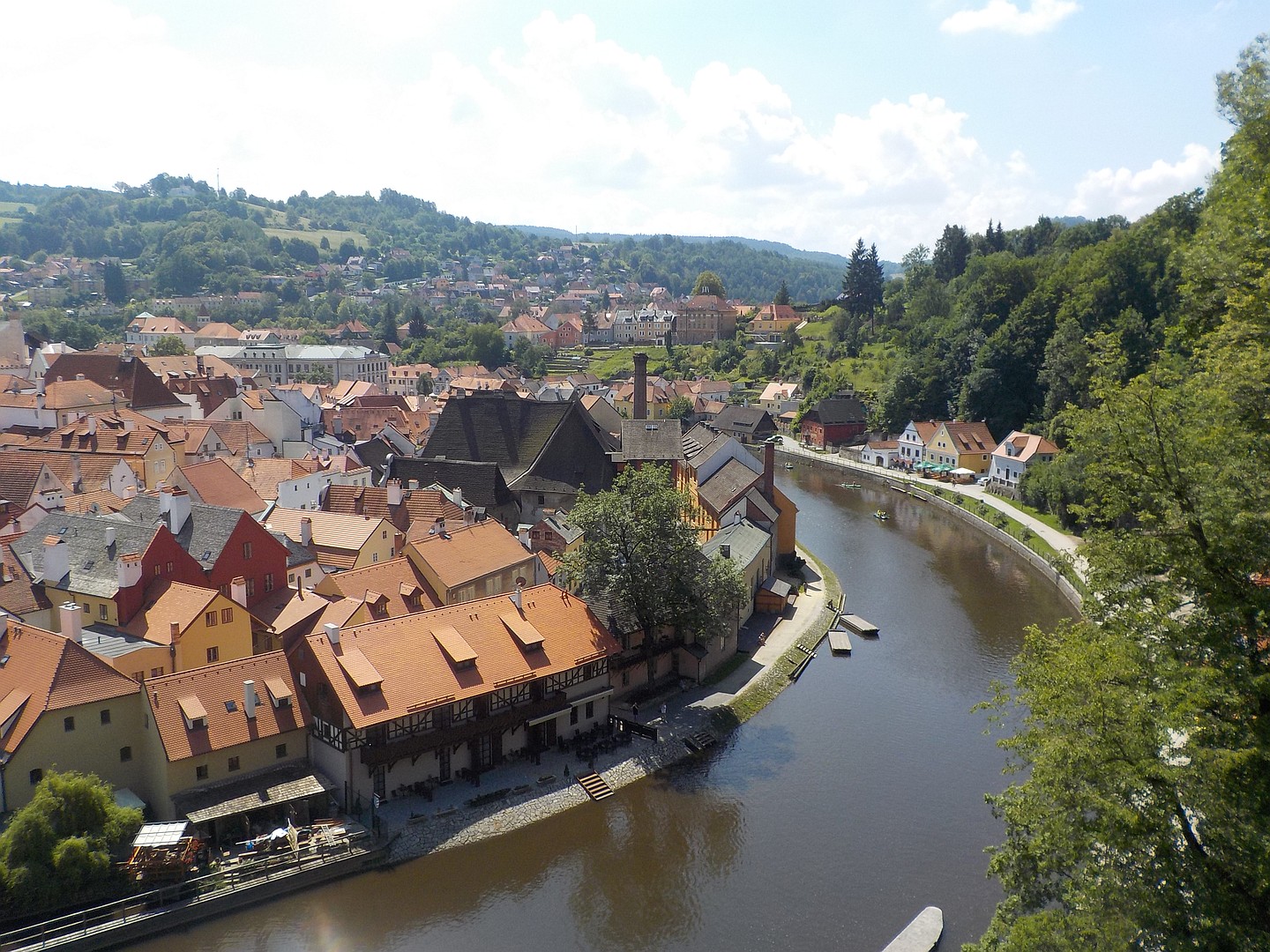 Český Krumlov (niem. Böhmisch Krumau, Krummau) – miasto w Czechach, w kraju południowoczeskim. Według danych z 31 grudnia 2003 powierzchnia miasta wynosiła 2216 ha, a liczba jego mieszkańców 14 146 osób. Miasto leżące nad brzegami wijącej się w tym miejscu Wełtawy powstało wokół XIII-wiecznego zamku. Zbudowany na nadbrzeżnej skale zamek służył ochronie brodu przez rzekę. Český Krumlov stanowi przykład małego, średniowiecznego miasteczka Europy Środkowej, które rozwijało się bez zakłóceń przez pięć wieków, zachowując w ten sposób nienaruszone dziedzictwo architektoniczne. W 1992 roku zabytkowe centrum miasta zostało wpisane na listę światowego dziedzictwa UNESCO. ( ukradłem z Wikipedii )