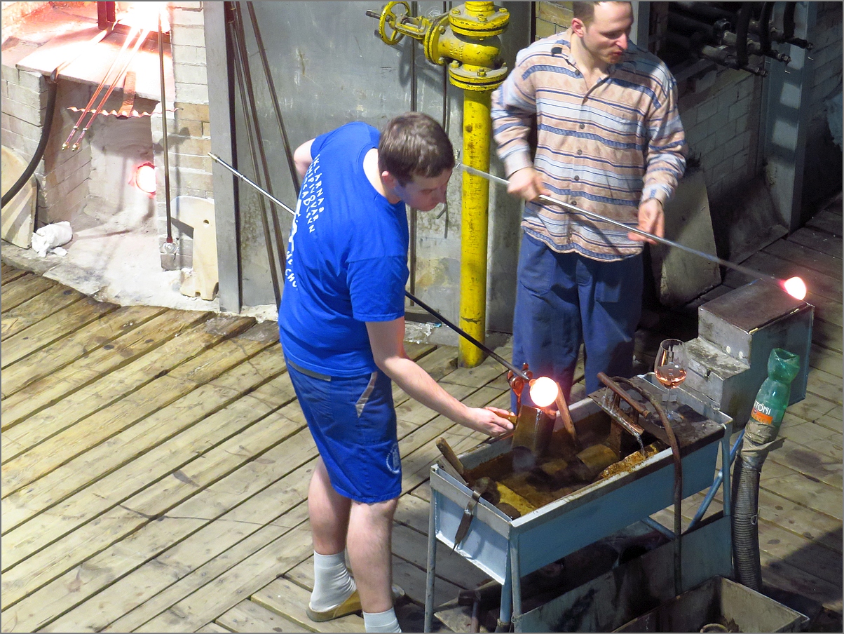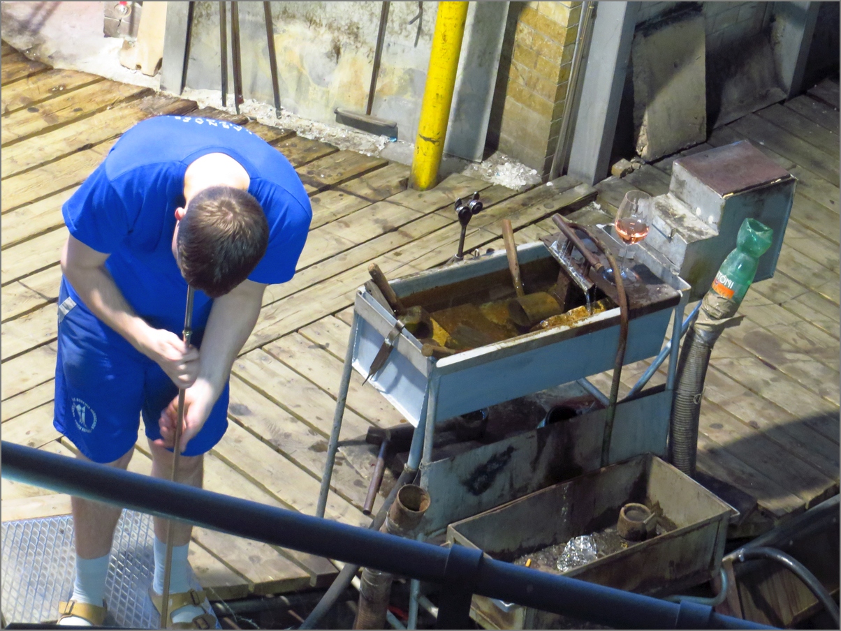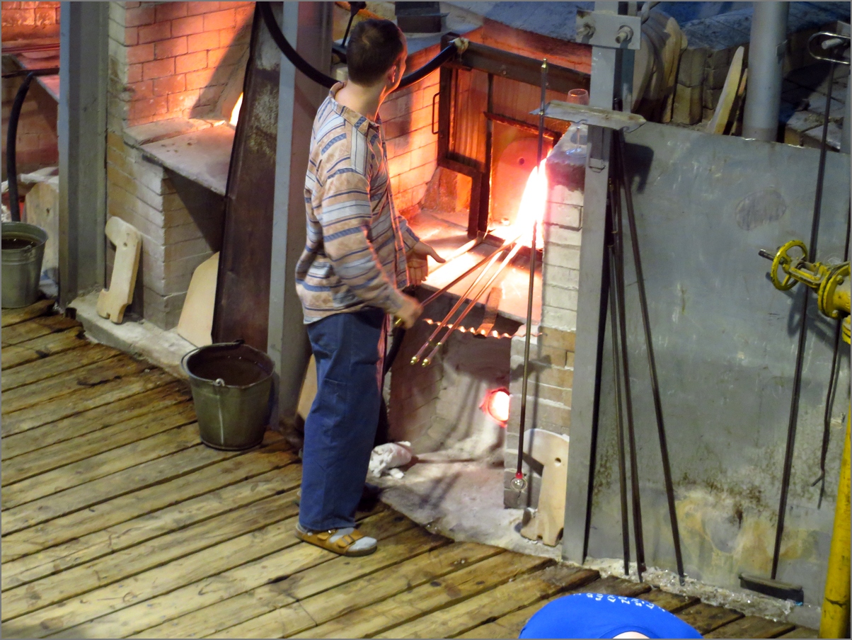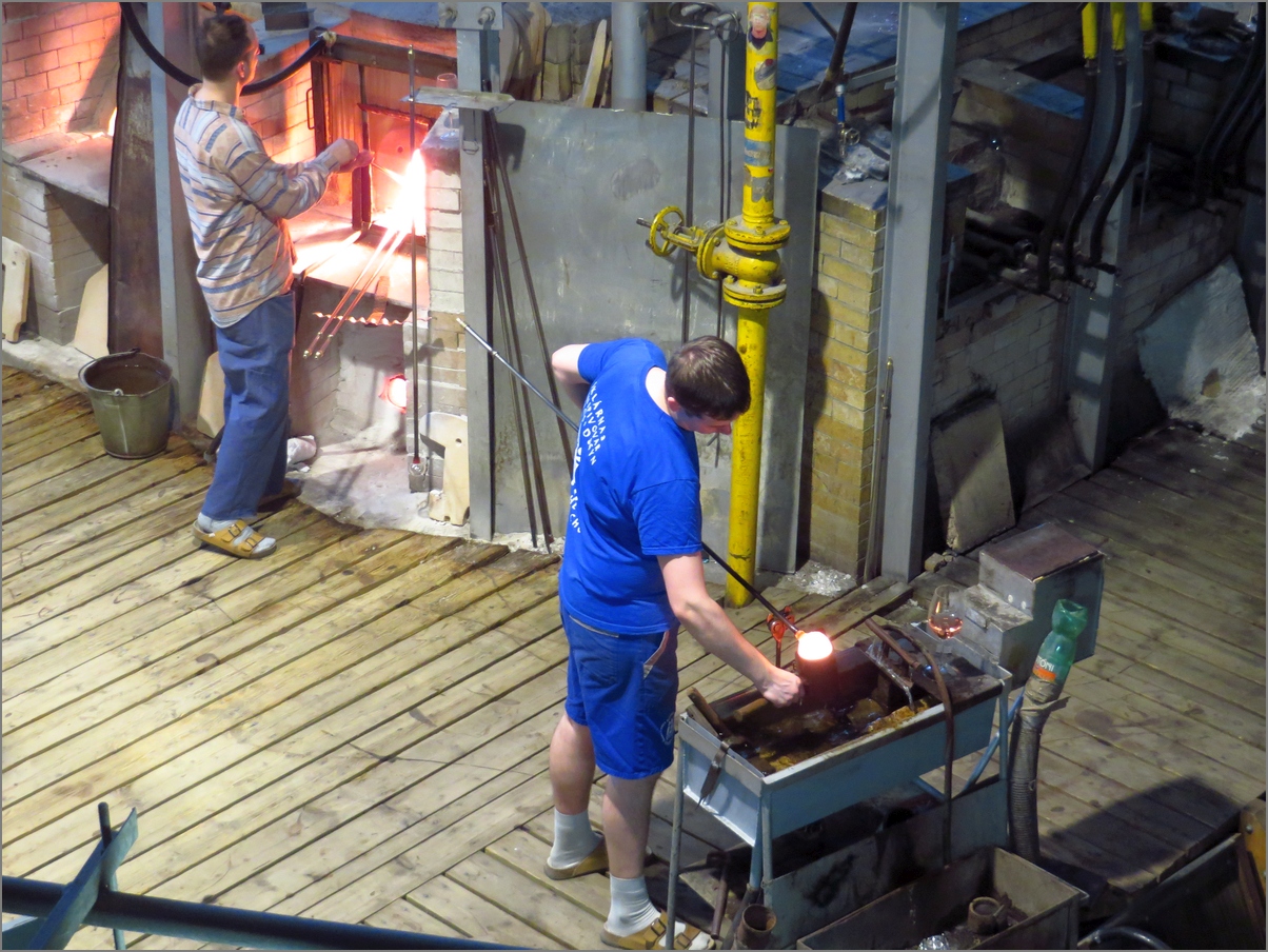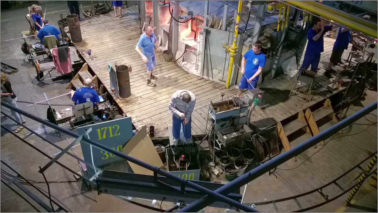 Piece dwa, szkło topi się tam w nocy, w temperaturze 1450 stopni. W dzień płynne szkło ma temperaturę „tylko” 1250 stopni…