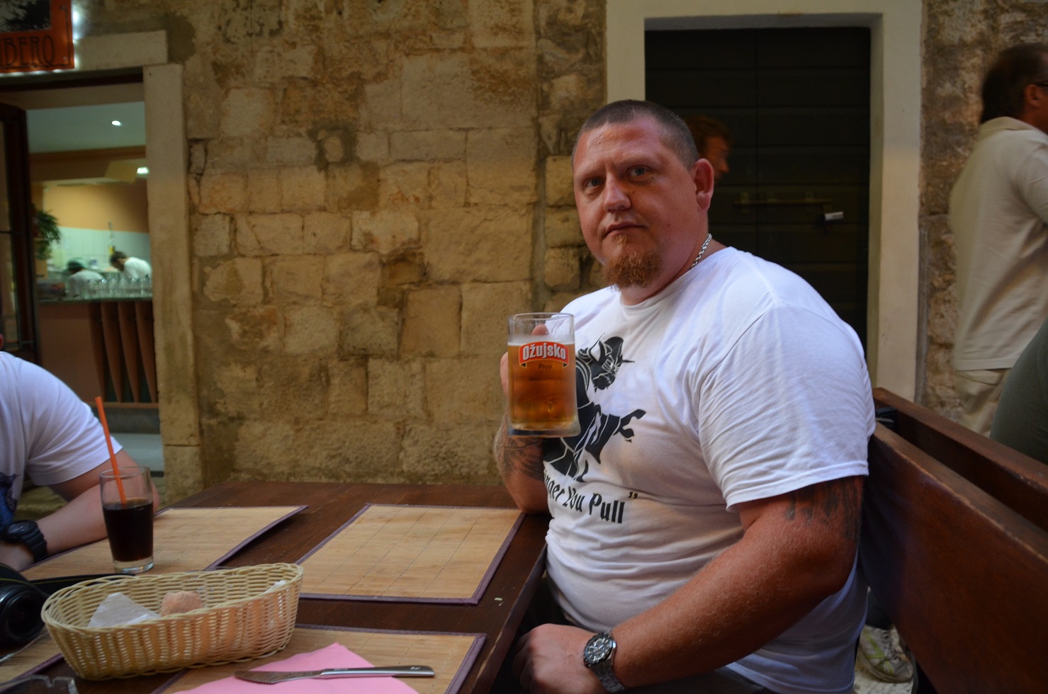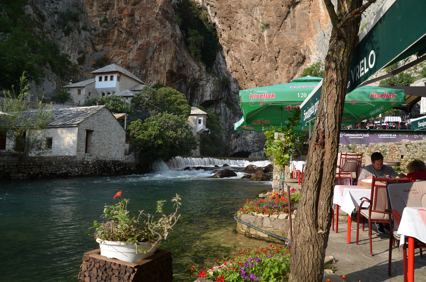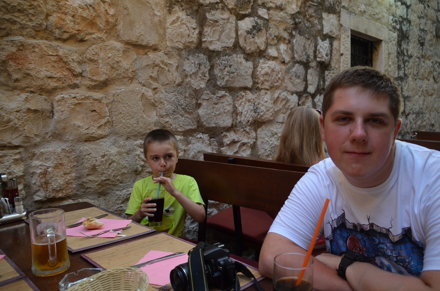 Najpierw idziemy coś zjeść, siadamy w restauracji przy rzece, od wody wieje orzeźwiający chłód, widoki cudne, nawet rodzinka się relaksuje i przestają się tak na mnie dąsać